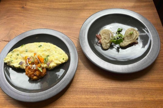 第3弾は、松江市内で料理店を営む松江市地域おこし協力隊とのコラボ。小泉八雲が生涯に1冊だけ出版した料理本「クレオール料理読本」に記載の“とてもおいしいオムレツ”のレシピを忠実に再現したメニュー(下記写真左)と、耳なし芳一の耳をイメージした創作メニュー”おつまみみ”(下記写真右)の提供を行いました。