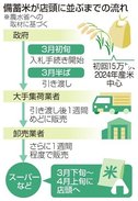 政府は来月半ばに備蓄米を放出すると発表した。スーパー店頭のコメ価格は1年前に比べ8割も値上がり。高まる消費者の不満に押され、最後の「残されたカード」(江藤拓農相)を切った。青森県の年間生産量に匹敵する最大21万トンという大規模な放出で、流通の目詰まりを解消する狙い...