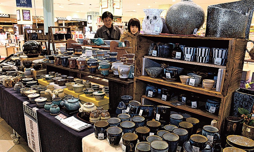 茶器から陶芸が発展した県東部と、瓦や水がめなどの生活雑器にルーツがある西部の窯元とで作風の違いを楽しめるのが特徴で、大田市温泉津町温泉津に窯を持つ県陶器振興会の荒尾則和会長は「器で東西の暮らしの違いも感じ取れる。食卓や暮らしに合う作品を探して使ってほしい」と話した。