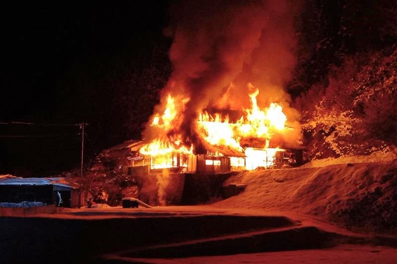 現場は雲南市役所の南西約7・6キロで、民家がまばらな農村地帯。午後9時40分ごろに現場に駆け付けた20代男性は「到着した時には建物全体から火が上がっていた」と話した。