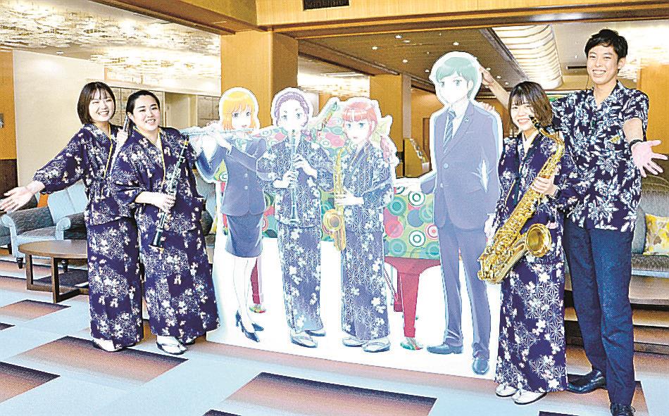 演奏会は昨年秋から、音楽経験のある20代社員の4人が隔週土曜日の夜に館内ロビーで開催し、好評を博す。アニメキャラクター化することで、演奏会や旅館を広く発信していこうと企画した。