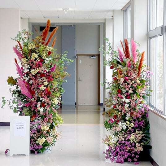 この度、2025年3月3日に行われる倉吉農業高等学校の卒業式にて、町内の花を使用して制作し
