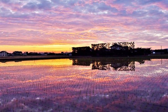 築地松と散居が織りなす景観は、四季折々に変わり、出雲地方を代表する風景として親しまれています。春から夏にかけては水田や緑の稲田の中に、秋は黄金の穂波の中に、そして冬には雪景色の中に築地松が佇み、とても風情があります。