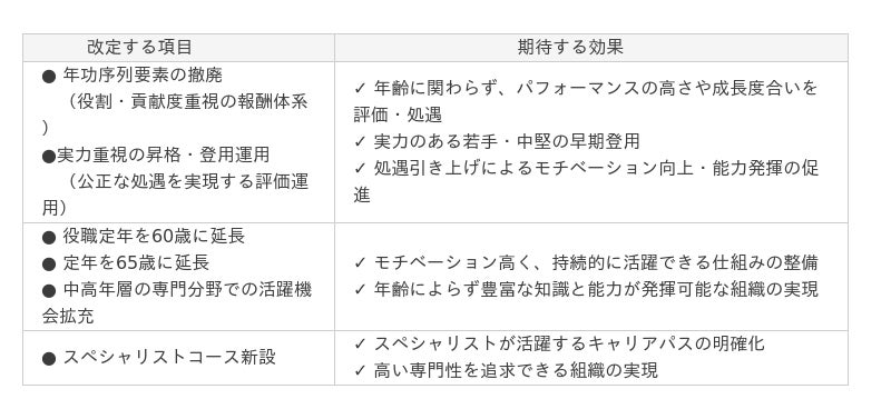 ~ 年齢に関わらず「実力」と「専門性」を適正に処遇へ反映する人事制度へ ~