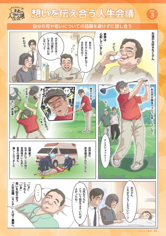 そのように人生会議が「いざ」という時ではなく「いま」必要であることを気づいていただくために、この度新たな啓発マンガを制作しウェブサイトに掲載しています。