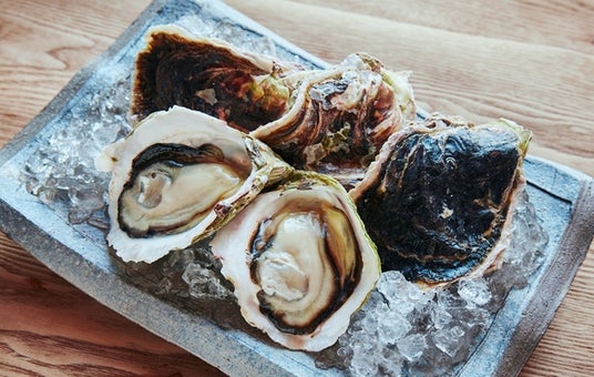 隠岐諸島の自然豊かな環境に恵まれているため、岩ガキの養殖が盛んです。春から夏にかけて旬を迎え、甘みとミネラルが増し、特に身が大きく濃厚な味わいが特徴です。