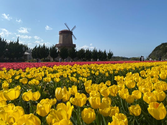 毎年、4月中旬に安来市役所伯太庁舎周辺を会場に開催されます。オランダをイメージした風車をバックに、約100種類、50万本の色とりどりのチューリップが一斉に咲き乱れ、多くの人の目を楽しませます。
