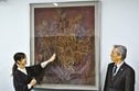 第40回益田市美術展が13日、同市有明町の島根県立石見美術館で始まり、日本画やデザイン画、工芸など125点が並び、来観者が見入っている。16日まで。