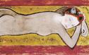 岡本神草(しんそう)(1894~1933年)の「口紅」は卒業制作で、手鏡で口紅を直す舞妓(まいこ)の構図が話題になったという。少し不気味な白い歯や、着物の赤や黒、金の色彩が目を引く。