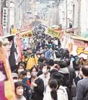 大田、春の彼岸市「中日つぁん」にぎわう 歩行者天国に200軒の屋台ずらり
