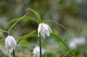 イズモコバイモは島根県固有種で、環境省が絶滅危惧種に指定する。15~20センチの茎の先に、2、3センチの小さな花が咲く姿から「春の妖精」と呼ばれる。