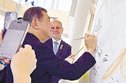 23日に現地でメディア向け除幕式があった。平井伸治知事が展示を体験。虫眼鏡型の機器を片手に歩き回り、鳥取砂丘砂の美術館や二十世紀梨を探し当てた。「楽しい企画になった。鳥取に行ってみたくなってほしい」と話した。