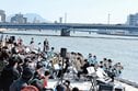 春分の日に音楽の楽しさを届けようと、ファンタスティックドリームバンド(14人)が主催し、市民ら約40人が訪れた。
