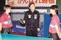教室は石川さんが47都道府県を回り、卓球の魅力を伝えるイベントの一環。浜田亀山ライオンズクラブが主催した。(三浦純一)