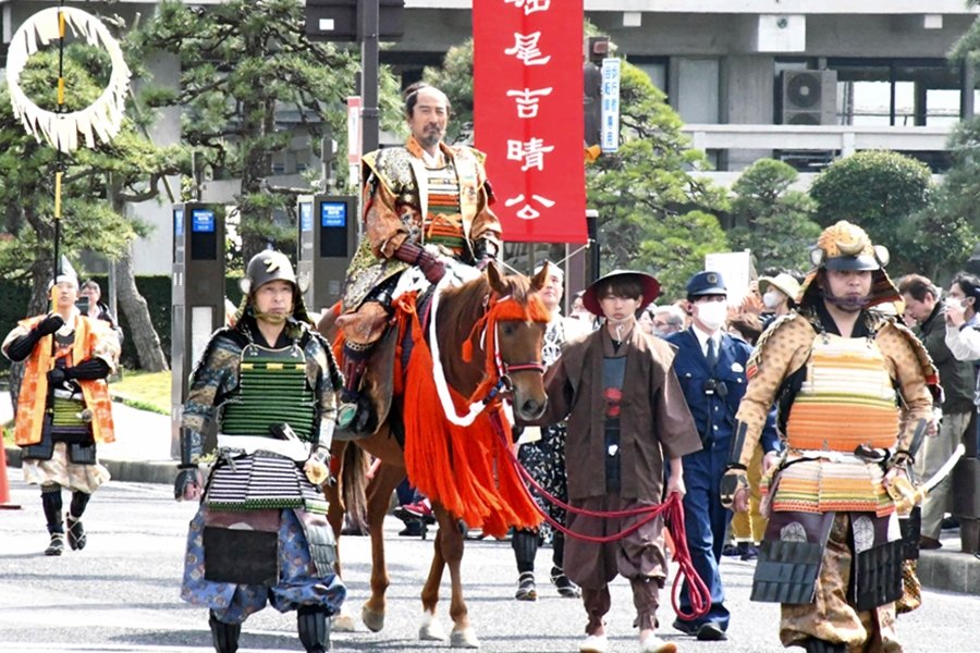 松江開府の祖・堀尾吉晴と一行の松江城入城を再現する「松江武者行列」が4月5日、松江市中心部で開かれる。