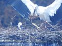 コウノトリふ化か 雲南で9年連続 学校の人工巣塔