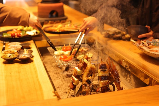 スタッフがおもてなしする贅沢な囲炉裏串焼きプランも用意。中庭では焚き火をかこみ、和やかにコミュニケーションがとれる場もご提供。