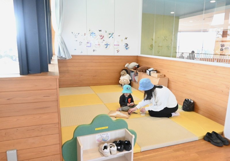 キッズコーナーもありパズルや絵本などで遊べる。授乳室もある。