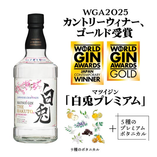 松井酒造合名会社(以下、倉吉蒸溜所 所在地:鳥取県倉吉市)の「白兎プレミアム」が、イギリスで開催された世界最高峰となるジンコンペティション「World Gin Awards(以下、WGA)2025」において、5度目の挑戦でついに悲願の日本代表となるカントリーウィナーおよびゴールドを受賞いたしました。