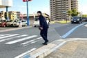同署員6人が学校に向けて横断歩道を渡る児童の安全を確保するため車両の交通整理に当たった。自転車の利用者には正しいヘルメットの着用を呼びかけた。