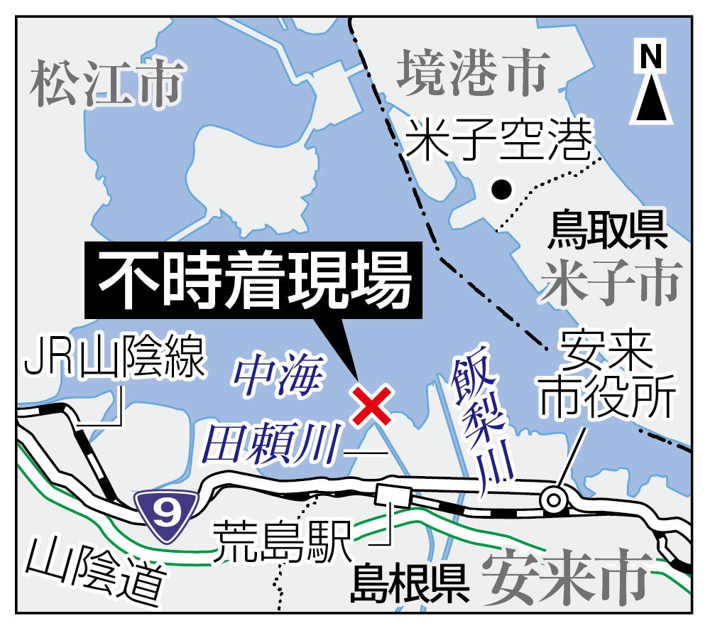 安来署、消防、島根県出雲空港管理事務所によると、目撃者から「飛行機の機体が、海の中に浮いている」と110番があった。