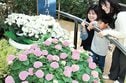 出雲市西新町2丁目、しまね花の郷で、しまね海洋館アクアス(浜田市・江津市)のシロイルカを花で描いた花壇がお目見えした。