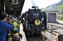 同駅周辺には約500人が集まり、SLを待ち構えた。午後1時7分に満席の245人を乗せたD51が汽笛を鳴らしながら到着すると、あちこちで歓声が上がった。
