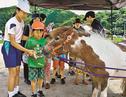 5日午前8時過ぎ、飼育小屋で雄の赤ちゃんが生まれているのを職員が発見した。体重は推定5~6キロで、か細い声で「メェ~」と鳴き、6歳の母メリーの乳房に吸いつく愛らしい姿を見せている。
