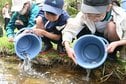 かわいいアユさん、大きく育ってね 川本・因原保育所の子どもたちが放流体験