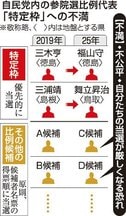 その一つが比例代表の特定枠制度。候補が政策を直接訴えることができないなど選挙活動が制限される。昨年10月の衆院選で大敗した自民党内では、同じ候補が特定枠を使い続けることへの反発が強まった。合区で候補が出せない県の候補に充てるとはいえ、今後対象県が増えると、さらに混乱する可能性がある。「弥縫(びほう)策」を重ねた結果の制度は限界に近いだろう。