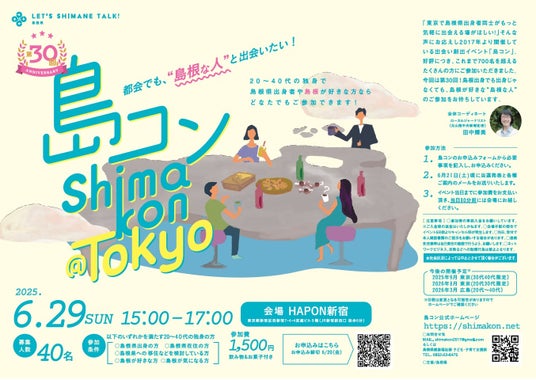 今回は第30回!島根出身でも出身じゃなくても、島根が好きな“島根な人”のご参加お待ちしております!