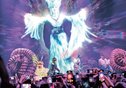 「八岐大蛇(やまたのおろち)」を演じた丸茂神楽社中は、八頭立てで大ホールを目いっぱいに使う迫力の蛇舞で観客を魅了した。高津神楽社中は益田市に伝承が残る万葉歌人・柿本人麻呂にちなんだ創作演目の「柿本人麿伝」を披露。疫病の根源である大魔神を人麻呂が退治すると拍手が湧き上がった。