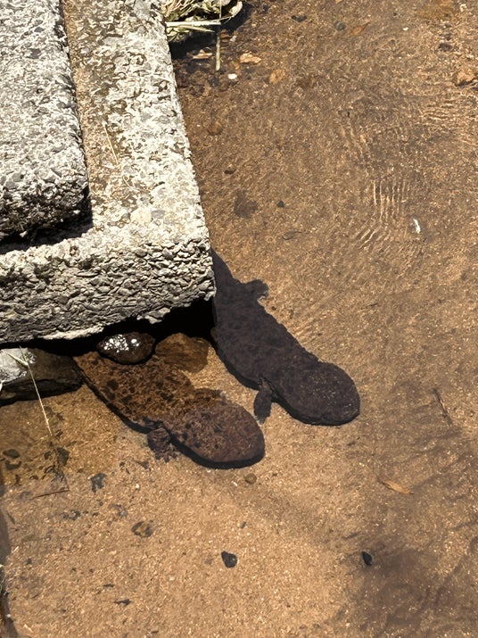 菅谷たたら山内近くの清流には、天然記念物「オオサンショウウオ」が棲んでいます。運が良ければ