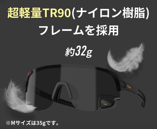 ミラーを搭載しながらも、Sサイズで32gの軽量設計。UV400カット、耐衝撃性、曇り止め、防傷コーティングを施したレンズを採用。日常使いからロングライドまで幅広いシーンに対応します。