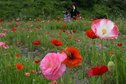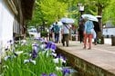 来園者は雨露をまとったハナショウブを眺めながら浮島や池が配置された園内を散策し、ゆったりとした時間を楽しんでいた。松江市東津田町から夫婦で訪れた農家の浅野要一さん(66)は「一つの品種の花の見頃は1週間ほどと短いが、花が雨にぬれ、梅雨ならではの花という感じが大好き。心が癒やされる」と満足げに話した。