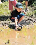 松江で小学生ら田植えに挑戦、コメ作り学ぶ