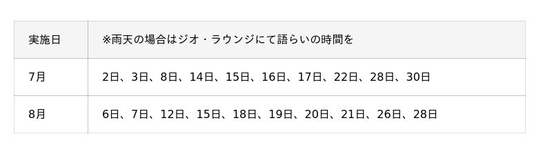 通常は毎週水曜・土曜の実施ですが、7・8月は特別開催日を設定して実施します!