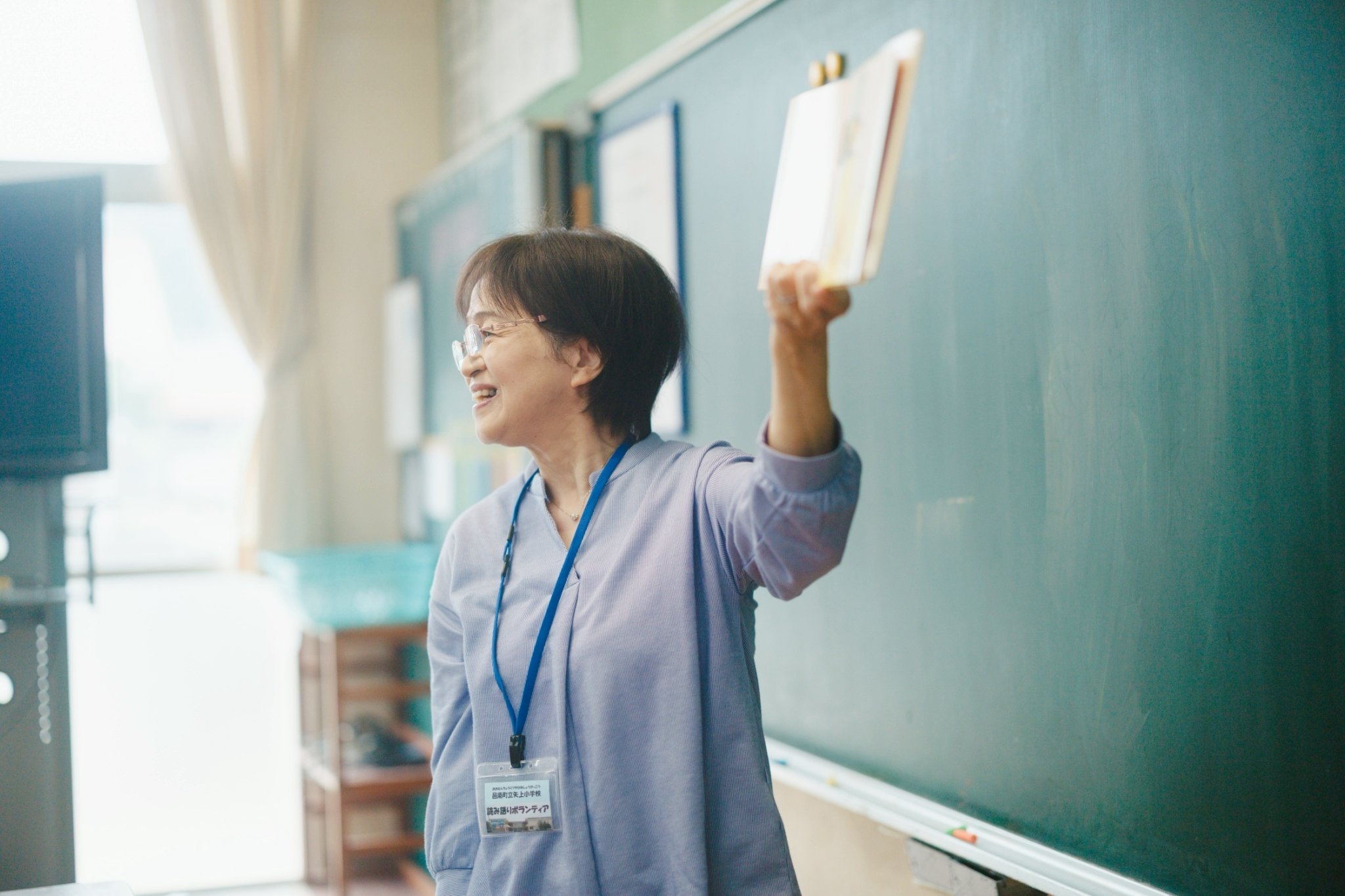 邑南町矢上の白川富美子さん(72)は、1時間目が始まるまでの15分間の朝の時間を使って、月に2回、絵本の読み聞かせをしています。矢上小学校でのボランティア活動は、もう5年になります。