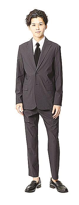 商品名は「ゼロプレッシャースーツ」。販売価格はジャケットが6050円、パンツが3850円。水着などに使う高機能の生地を使い、同社の一般的なスーツと比べ縦横ともに6倍の伸縮性を持たせた。着用時の圧迫感が大幅に軽減できる。ブラックとネイビーの2色を用意している。