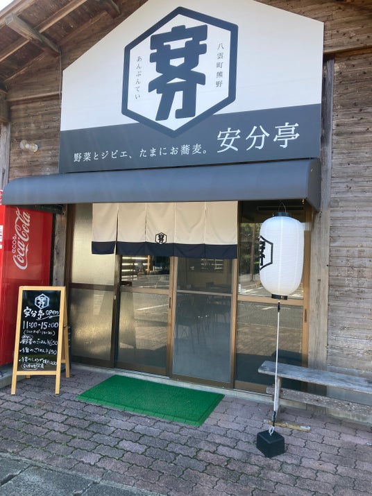 【安分亭について】安分亭は2022年5月にオープンした、野菜とジビエをメインに扱う食堂です。八雲猪肉生産組合の加工施設で処理されたイノシシや、地元農家の米・野菜を使用した、日常に溶け込むジビエメニューを提供しています。店舗は熊野大社の正面に位置し、観光客にも親しまれています