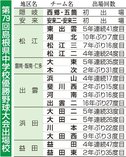 18チーム対戦決定 島根県中学校優勝野球大会 7月21日開幕 大田二、大田一、浜山、大東が軸 スポーツ 山陰 2025/6/26 04:00 保存 第79回島根県中学校優勝野球大会(県中体連、山陰中央新報社、県教委主催、島根電工特別協賛)... 残り418文字(全文:464文字) 続きを読むには会員登録が必要です 無料会員に登録する ログインする 保存 記事を保存する この機能は有料会員限定です。保存した記事やフォローした特集をマイページでご覧いただけます。 有料会員になる ログイン 関連記事 【結果・展望】島根県中学校優勝野球ブロック大会 全7地区を総まとめ 2025/6/16 05:00 地区代表18チーム、島根県大会出場が決定 第79回島根県中学校優勝野球ブロック大会 2025/6/16 04:00 【試合結果・まとめ】松江ブロック大会 東出雲V、打撃戦で湖北下す 島根県中学校優勝野球大会 2025/6/15 17:35 松江三、松江二、東出雲、湖北 4チーム県大会へ 第79回島根県中学校優勝野球ブロック大会 2025/6/14 04:00 【試合結果・まとめ】出雲ブロック大会 浜山、斐川西を破り優勝 島根県中学校優勝野球大会(4~6日) 2025/6/6 15:45 特集・連載 竹島のアシカ猟 映像公開 領土・主権展示館拡張 2025/11/15 04:00 住民、竹島問題啓発を要望 5年ぶり、領土議連と意見交換 2025/2/22 04:00 カレンダーなぜ日曜始まり?さかのぼると… 手帳は月曜始まり「今は過渡期」 2025/1/12 04:01 「働くリアル」聞く 大学生と企業交流 浜田 2024/11/16 04:00 もしもの時の防災対策 防水工事の気軽な相談先 和光工業㈱ 代表取締役社長 下川 茂雄氏 島根県西部専門高校特集 地元で育つミライのチカラ 花と人がつなぐ、斐川のオープンガーデン 出雲市斐川町 福島博さん