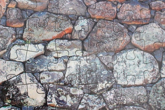 「石垣パズル」は、松江城の石垣をそのままパズルにしたもの。上下左右すべて石垣の絵柄で構成され、隣接ピースの形状を頼りに完成を目指します。