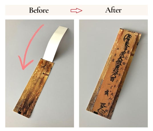 3.国宝指定の決め手「祈祷札」がモチーフの「しおり」