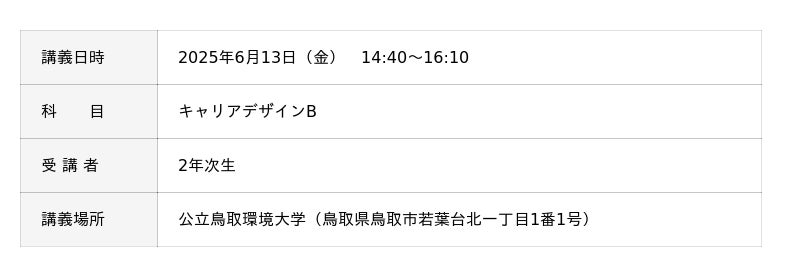 水ing株式会社(本社:東京都港区 社長:安田真規)は2025年6月13日、公立鳥取環境大学において、キャリアデザイン科目の講義にゲスト講師として登壇しました。環境等について学ぶ学生が多様な働き方を知り、自らのキャリアデザインの一助となることを目指し、本講義を実施しました。