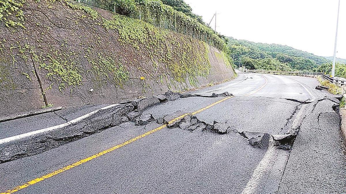 国土交通省松江国道事務所は18日、出雲市多伎町小田の国道9号で歩道の崩落や路面の亀裂があり、約9・1キロ区間を全面通行止めにした。原因は調査中だが降り続く大雨の可能性があるという。この路面異常でJRが運休したほか、出雲市が地滑りの恐れがあるとして近隣10世帯(約30人)に避難を呼び掛けた。