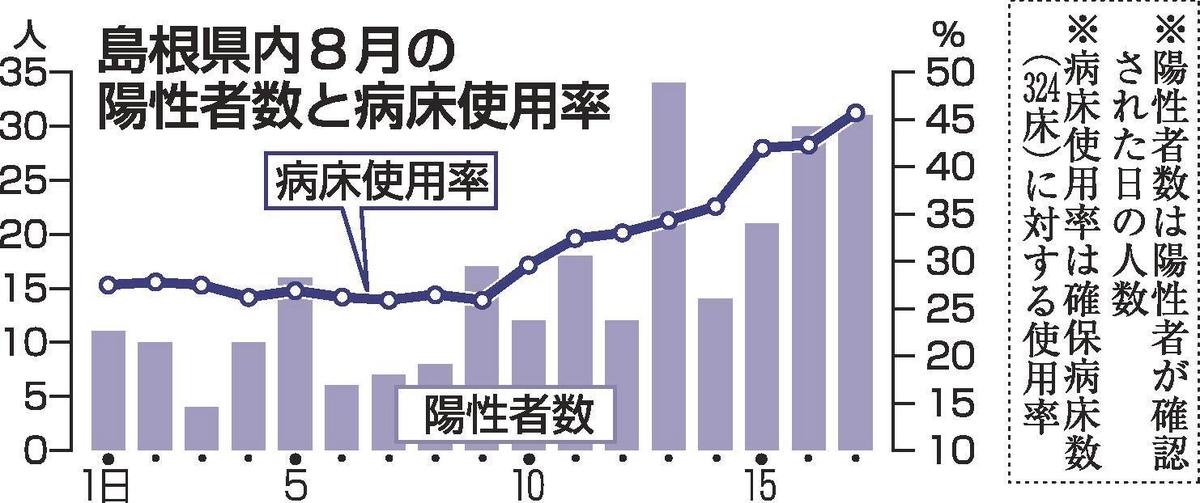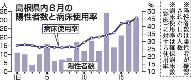 松江、出雲など県東部の市部が中心だった感染者は8月に入って県西部でも71人が感染し、満遍なく広がる様相を呈する。