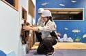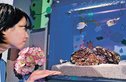 淡水魚4種類、海水魚1種類を二つの水槽に分けて展示。いずれも数センチと小さく、来館者は目を凝らして観賞している。5種類のうち、体長1・5~2センチのネオンテトラは、流れ星を思わせる鮮やかな青色と赤色が特徴で、レインボークリスタルテトラは体が光っているように見える。