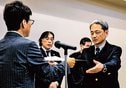 波田副市長が「長年、看護師として続けた活動が国に認められた」とねぎらい、枡本部長は受賞を感謝し「患者が制限なく社会で暮らすには支援と理解が欠かせない。次の世代に活動をつないでほしい」と話した。(堀尾珠里花)