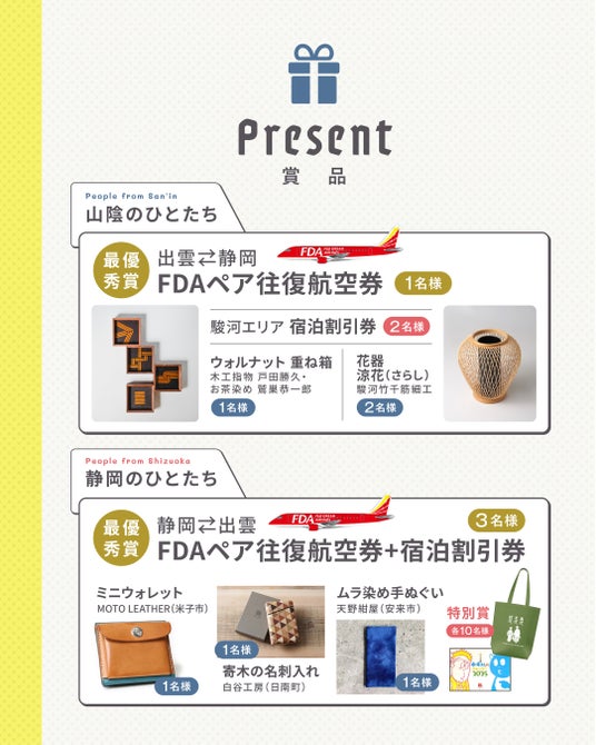 【賞品】FDA(フジドリームエアラインズ)ペア往復航空券、宿泊割引券など