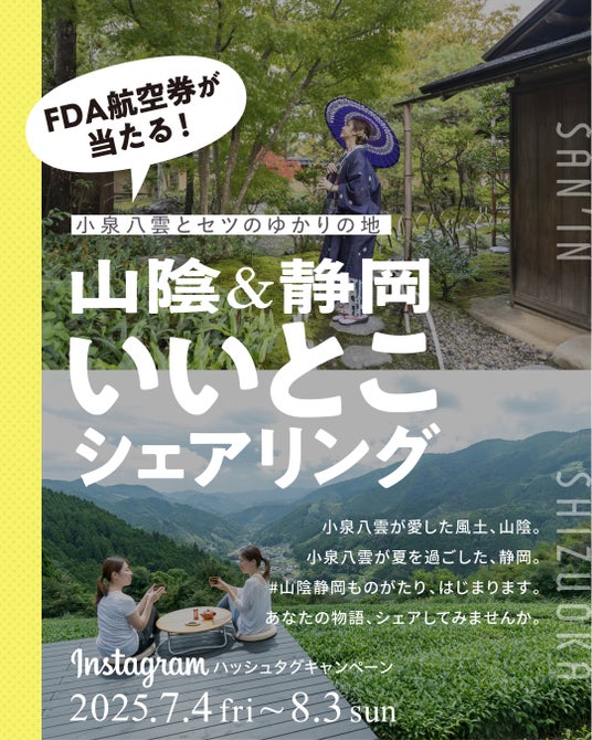 【概要】山陰まんなか観光局とするが企画観光局が協力して、小泉八雲とその妻・セツにゆかりのある地域、山陰と静岡を舞台としたInstagramハッシュタグキャンペーン「いいとこシェアリング」を開催します。